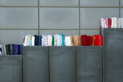 Acumular compulsivamente objetos es resultado del consumismo en una sociedad de juventud nómada que estudia y trabaja en distintos lugares teniendo que liar sus bártulos con frecuencia. El amontonamiento de pertenencias se convierte en un lastre y la selección de objetos que nos acompañará en nuestro viaje no es fácil. Lo único que claramente siempre hemos de escoger es ropa, ligera, útil e imprescindible. Ante el transporte apresurado y precario dejamos atrás prendas que regalamos o incluso abandonamos en aeropuertos donde el límite de peso obliga al vaciado imprevisto de una maleta que después volverá a ser inspeccionada y precintada con fino papel de plástico. Se trata de una cáscara que envuelve nuestros recuerdos, la ropa arrugada y revuelta que, una vez reubicada, doblaremos y ordenaremos mecánicamente, sin pensar demasiado pero con toda una carga conceptual detrás, provocando una alineación de gamas cromáticas y sugerentes texturas que el artista Juan Carlos Rosa Casasola traslada al ámbito expositivo. El bucle de mudanzas en el que él mismo se ha visto sumido le lleva a reflexionar sobre el almacenaje, la transitoriedad y el reciclaje, subyaciendo la idea de dar una nueva vida a un objeto con el que ya hemos tenido nuestra historia, dejarlo ir y quizás formar parte del paisaje vital de otra persona. Como cuando un libro viaja a manos de un nuevo lector, la ropa aquí simboliza el flujo de un ciclo y un cambio de paradigma hacia consumir menos y compartir más, dotando de un valor trascendental al objeto sin dejar de lado el componente estético. Con un atractivo despliegue de colores en cuidada armonía, el artista plantea su propio organigrama de almacenaje a partir de prendas suyas, prestadas, donadas, de segunda mano, de personas con diversas profesiones, edades, orígenes y estilos. El impacto visual de su obra interviniendo el hall de La Fundación Frax con dibujos, fotografías y esculturas insta a revisar la noción aristotélica de que la naturaleza aborrezca el vacío.